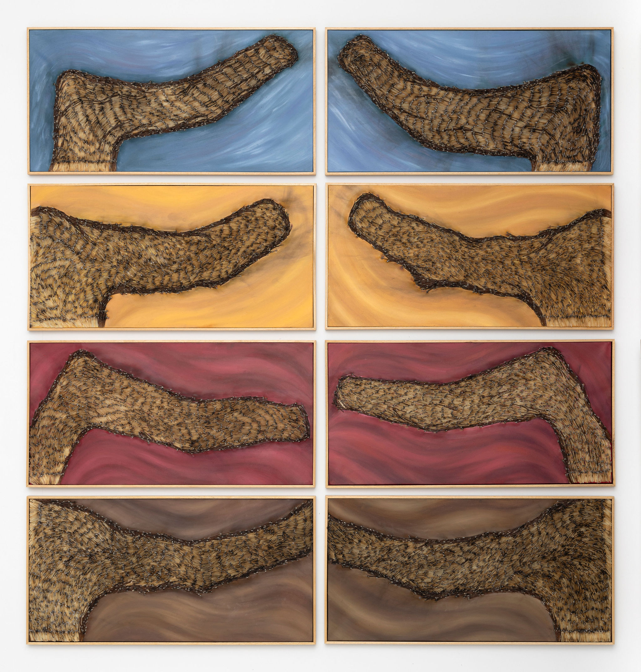 Lianet’s work is diverse in its expressive resources—painting, sculpture, and installations—and privileges the materiality of the pieces, the gesture as a trace of real time, and the energy invested in the work. In some canvases, the use of fire creates living textures, the result of an incineration process that becomes a powerful expressive device.